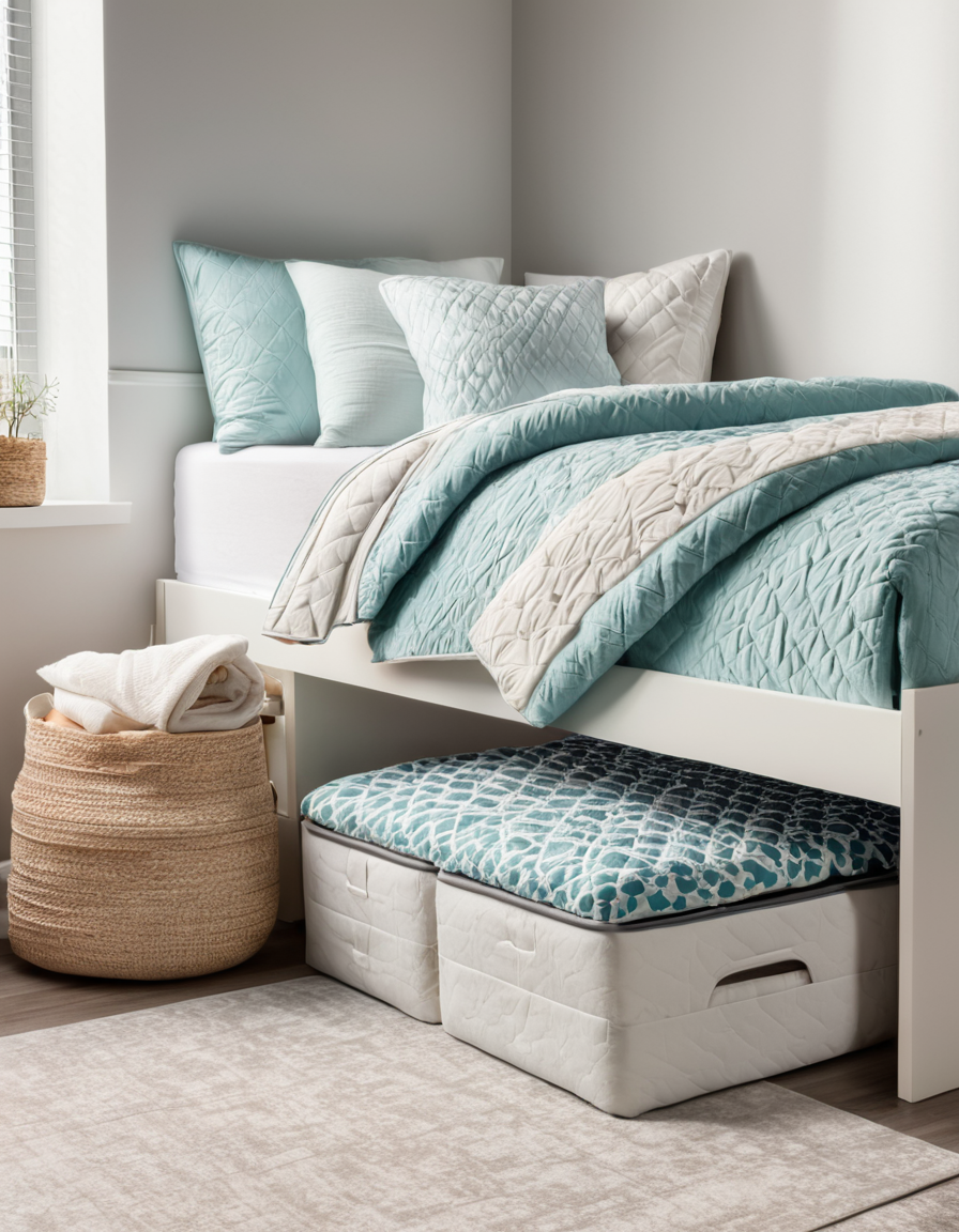 Dorm rooms often lack storage space, so maximizing every inch is crucial. Use under-bed storage containers to stow away extra clothes, shoes, or books. Opt for clear plastic bins, wheeled drawers, or fabric baskets that can easily slide under your bed. This solution keeps your room tidy and organized while freeing up valuable floor space.