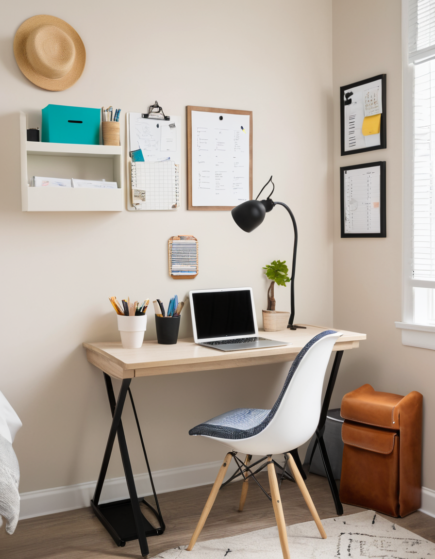 Make a working spot that has all the necessary accessories so that it helps you focus better on the studying process. Searching for such things as desk organizers, a well-made study lamp, and good seating can be of interest to you. The desk having whatever is on the shelf, as a student, you keep everything you need within your reach without taking up unnecessary spots of the room and still creating a masterpiece worthy of your long hours of studying.