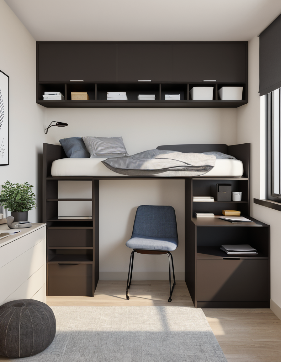 In general, dorm units are small spaces thus, use of revolutionary layout beds or lofts that let you save space will make the dorm feel more spacious. Functional and space-saving furniture for dorm rooms not only introduces multifunctional pieces such as a high bed to store underneath (where you can even make your work area),] but it also makes life easier. Modular shelving units along with folding desks are perfect candidates for households because they not only provide cool storage and usability but also keep your room looking neat.