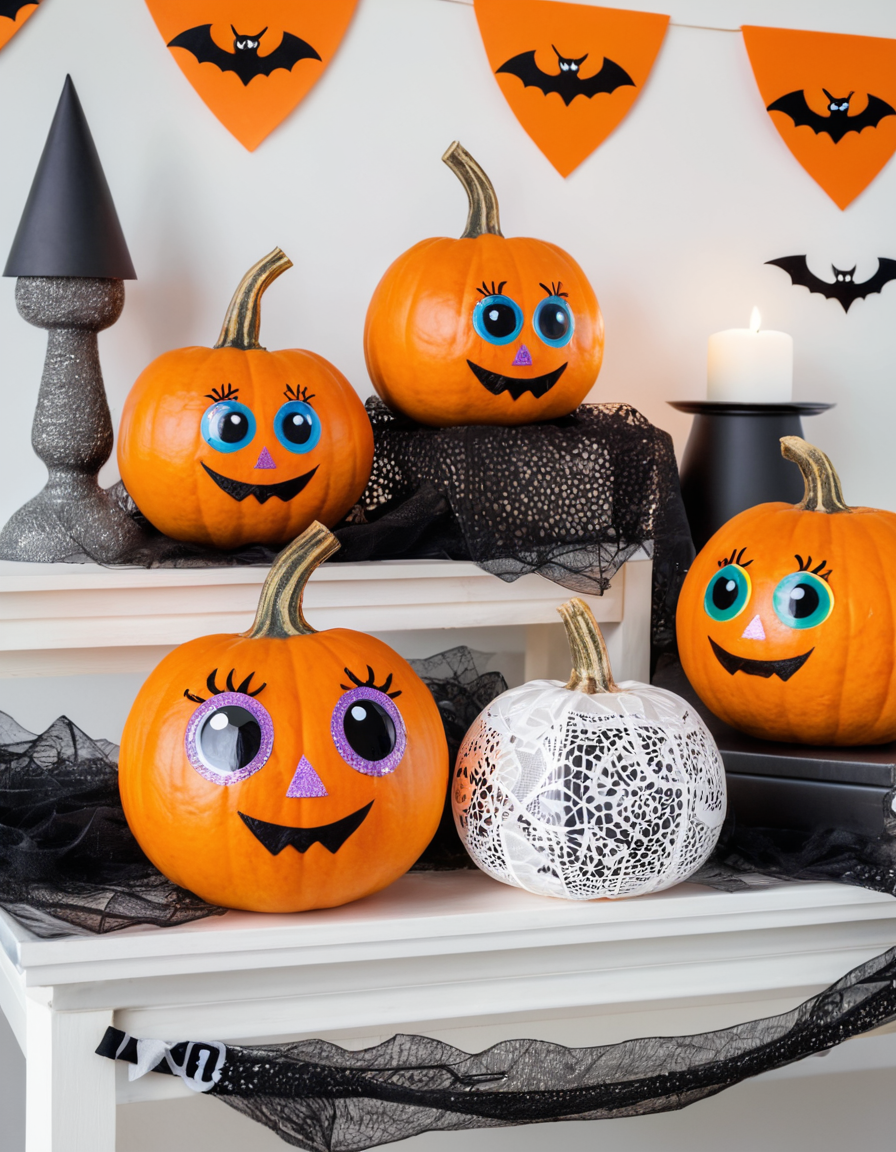 Carving pumpkins may not be practical in a dorm, but yet there are other ways you can proceed! The reasons may include painting mini pumpkins in halloween colors, covering pumpkins with googly eyes or glitter as well as relying on stickers and appliques for a quick and mess-free job. You can even dress the pumpkins up in black lace or use them as displays for little spiders and bats. These no-carve ideas enable you to get all the fun of decorating pumpkins without the mess while also keeping your dorm room cute and festive.