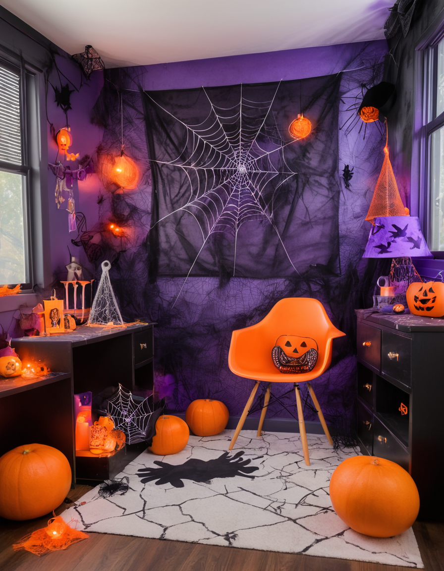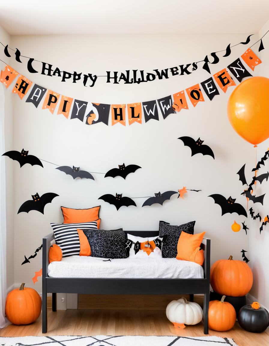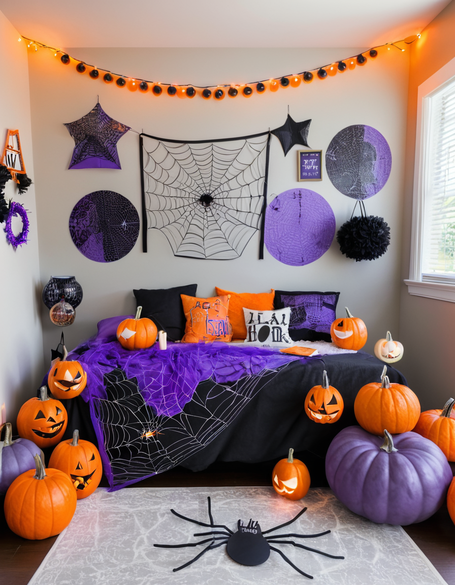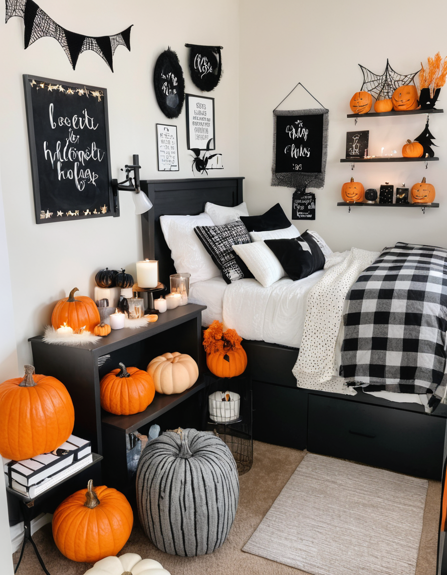 One of the simplest ideas for celebrating Halloween in your dorm is to add the traditional holiday colors of black, orange, and purple to your existing decor. Replacing ordinary pieces like pillow covers, rugs, or curtains with scoped colored prances. Decorate with touches like candles, lights, and garlands that are designed in pumpkin, black, and purple, respectively, to make the transition to the scary decor much easier while staying in the tone of what you already have. This method gives a sense of playfulness but at the same time keeps the space from looking too busy and is, hence perfect for dorm rooms with limited areas to decorate.