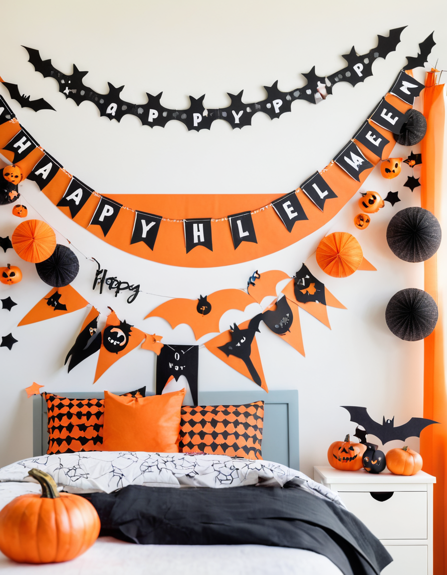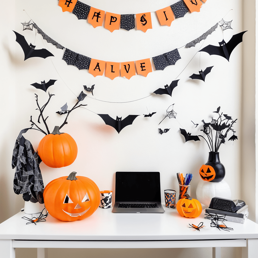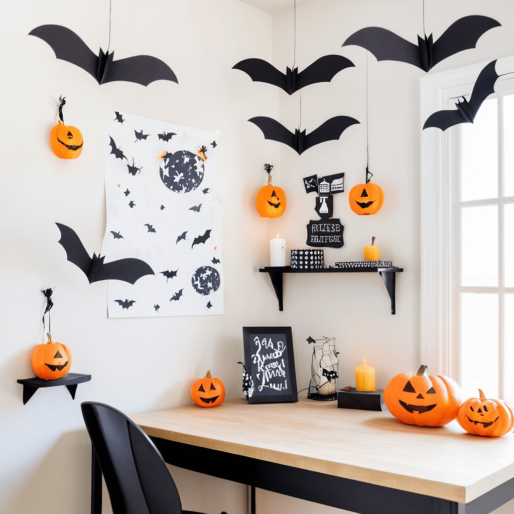 Doing handmade garlands of your own and banners is a great way to create your own decorations on Halloween and stick on a budget plan. Make simple garlands by placing bats, ghosts, and witch hats cut from colored paper on the yarn or twine and then stringing them together. On the other hand, use orange and black papers to make a banner with the sentence “Happy Halloween” on it, and hang them over your desk, next to the wall, or in the windows to spark off the Halloween mood. These decorations which are easy to create can be tailored to reflect your tastes and are wonderful for the addition of a spooky atmosphere having a little space.