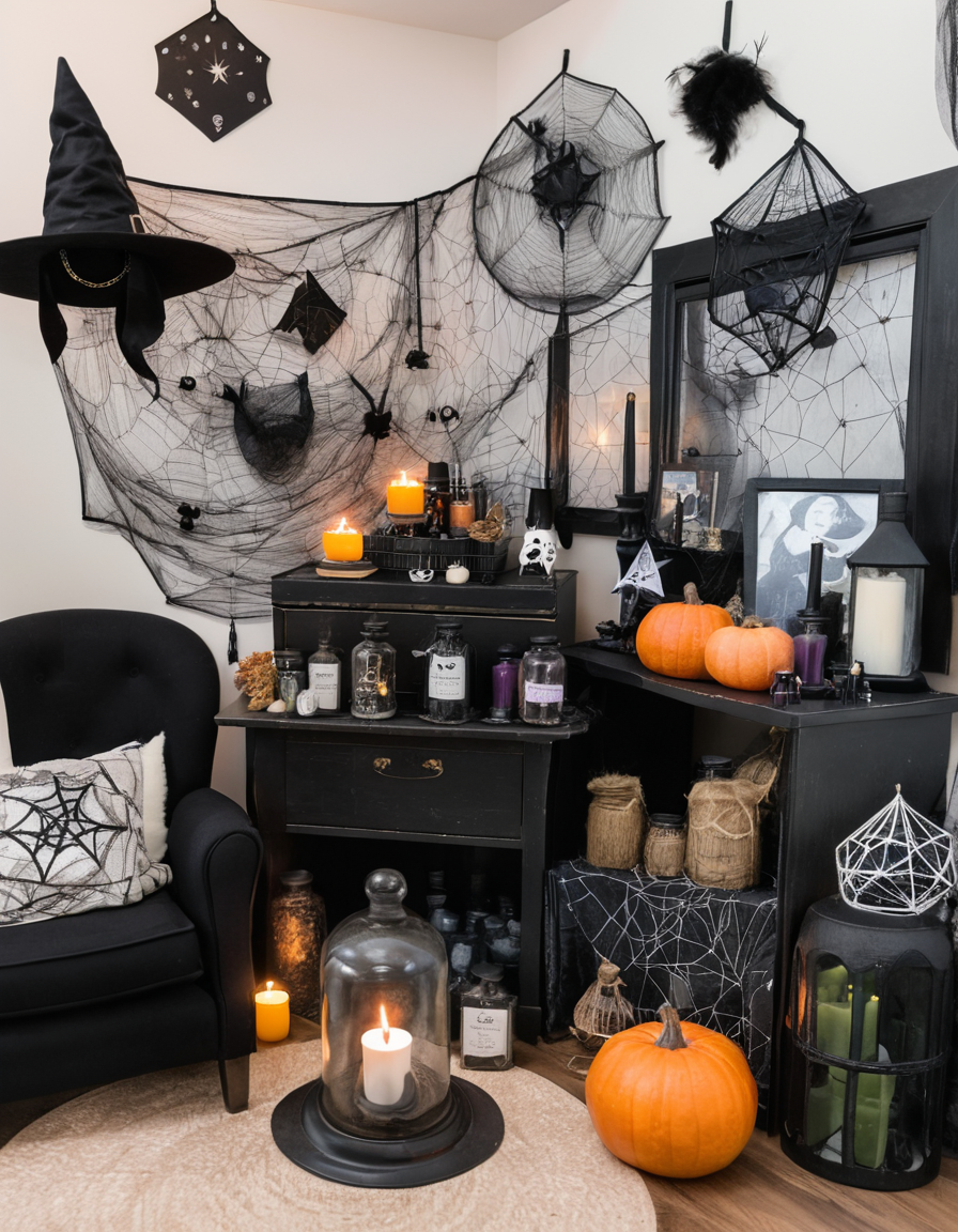 Are you short on space yet want to still make a focal point? In your dorm, you can consider creating a witch’s corner. The wall shelf or table top will be a display of witch’s potion bottles, black candles and mini cauldron. To the ensemble, add the spell books, a witch hat, and some fake cobwebs to get all the different effects. As you think, you will be thrilled with this design that is small and at the same time, it gives you the comfort and secrecy in the Halloween season. The witch’s corner is a thrilling and original solution to the problems of not having enough room while teaching the student real history-related information.
