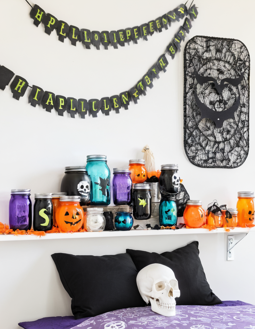 Space is a precious commodity in the dorm room and therefore requires out-of-the-box ideas for beautifying. Think mountable displays such as Halloween themed posters’ black backdrop, eerie wall art, and the image of the witch or bat maidens that you will be flying by utilizing the ceiling as the hanger. Craft various DIY projects such as modular pumpkin lanterns that can be attached to any wall or simply mason jars full of Halloween candies, or get your hands on paper cut-outs then trace and cut black cats and skeletons to hang in your room. Small spaces do not have to be impersonal- selective using different decor elements can affect your room positively!
