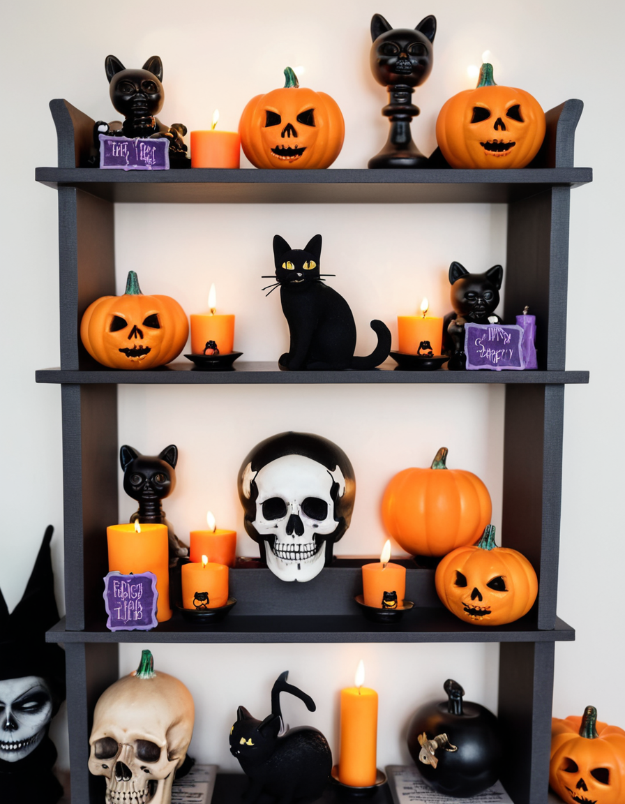 Your room is a great place to add Halloween decorations that are not huge. Place small pumpkins, bloody candles, and black cat statues on the shelves. The other elements that you can incorporate in the shelves are artificial spider webs and mysterious, ghostly books with suspicious names. Including small skulls and flasks with colorful liquids can make a sensational bulky exhibit that doesn’t crush your room. Shelves give a simple and effective way to show off your themed decoration and at the same time, have a functional area.