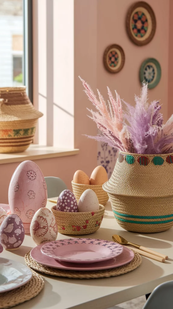 Immerse yourself in ozone of pastel and bright colors defining the easter decorations for indoor 2025. There is a focus on warm tones alongside soft neutrals with bold splashes of color to maintain the balance of festive flair and graceful elegance. Finishing touches are brought by the delicate textures and matching decor items.