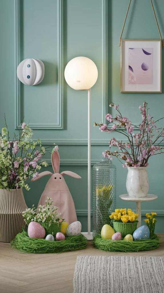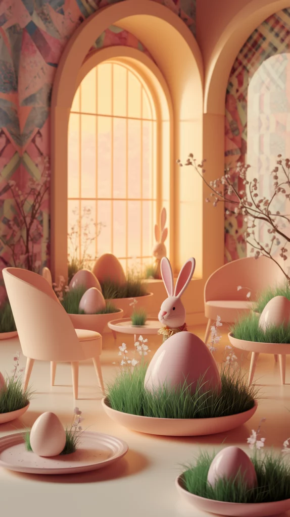 This part focuses on the new trends likely to emerge for Easter Decor 2025. The emphasis is on advanced design components that include eco-friendly, minimalist, and smart technologies. The space is furnished with modernistic furniture that is accentuated by clean lines, highlighting modern ceiling lights and clever twists of decor which redefine holiday interiors. Pay attention to the equilibrium of traditional and contemporary styles.