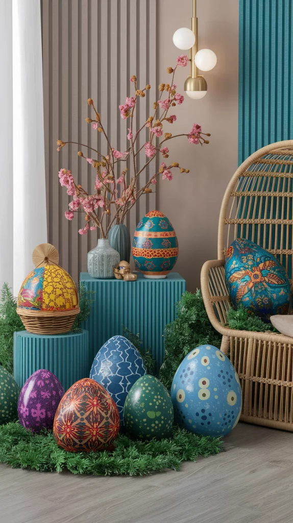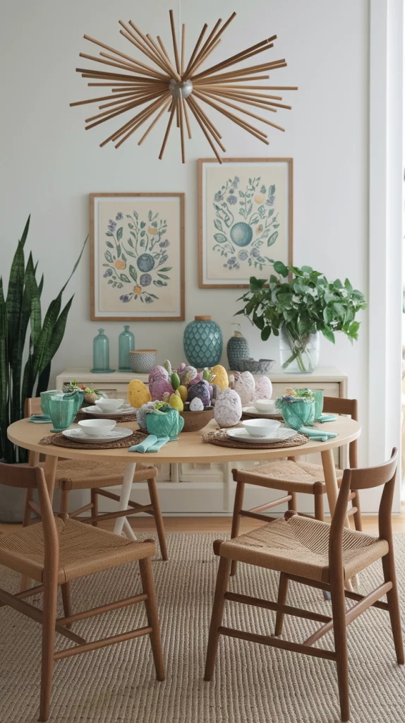 Create a perfect fusion of modern and classic by using different styles in your easter decorations indoor 2025. This design idea combines modern graphics with traditional Easter emblems attached to them in order to achive harmony. With modern perception styles and motifs, it can be achieved with use of new forms and materials. The space is visually active, combines the old and young which make it truly unique.