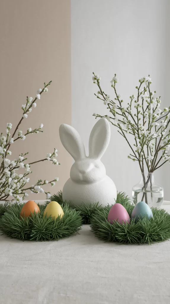 Minimalist easter decorations indoor 2025, emphasize the elegant beauty of ease. This design lets clean lines, open spaces and uncluttered color schemes dominate. Minimalist approaches employ the use of single-stem flowers, geometric easter eggs, and well crafted simple pieces as decor items. Design lingers upon the idea of minimalism where less is more to put a spotlight on every point that is minimalistic.