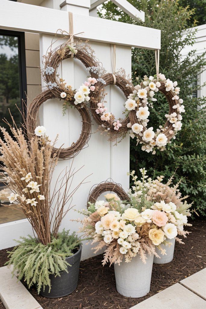 If you want an amazing Easter setup, then rustic outdoor wreaths and garlands would be perfect for you because they blend perfectly into nature. This particular style uses natural twigs, dried flowers, along with soft pastel colors to make elegant decor. The artistic details and rustic look still embody highly modern outdoor qualities.