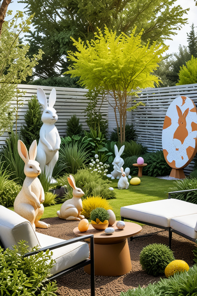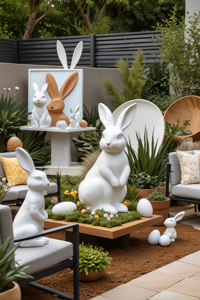 Sculptures in the garden can be used to add a touch of beauty to the yard and celebrate some special event. From abstract pieces to fun pieces like Easter bunnies, these sculptures serve as topos decorating whilst creating a lovely and sophisticated charm. The artworks are created to blend with nature nearby as well as modern furniture which results in a lively yet balanced environment.