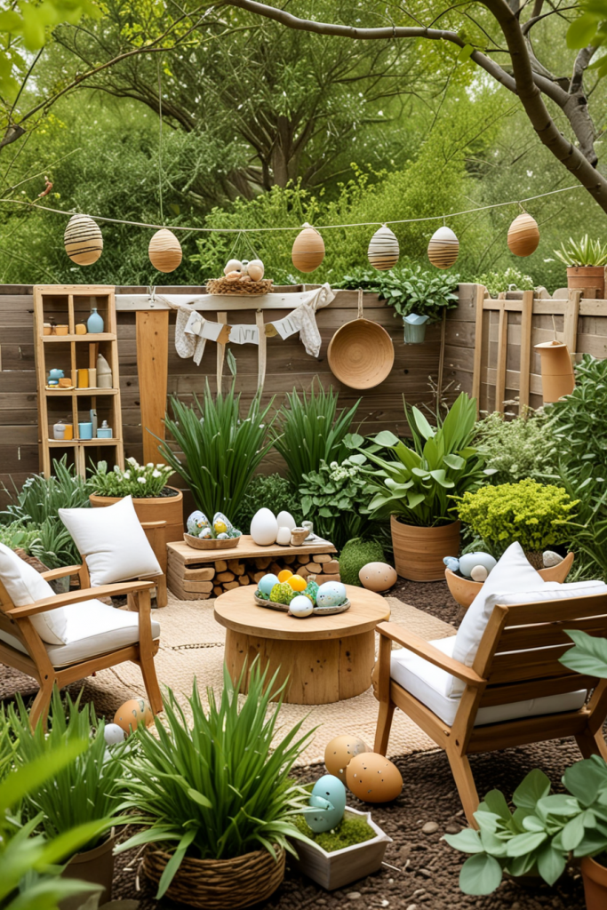Sustainable design trends for decorating outdoors during Easter is eco-friendly and upcycled, and repurposing of materials as well as use of biodegradable components makes the designs eco friendly because they reduce waste. The outcome is an innovative space appealing to the eyes while being friendly to the nature as the space combines modern design with a sustainable approach.