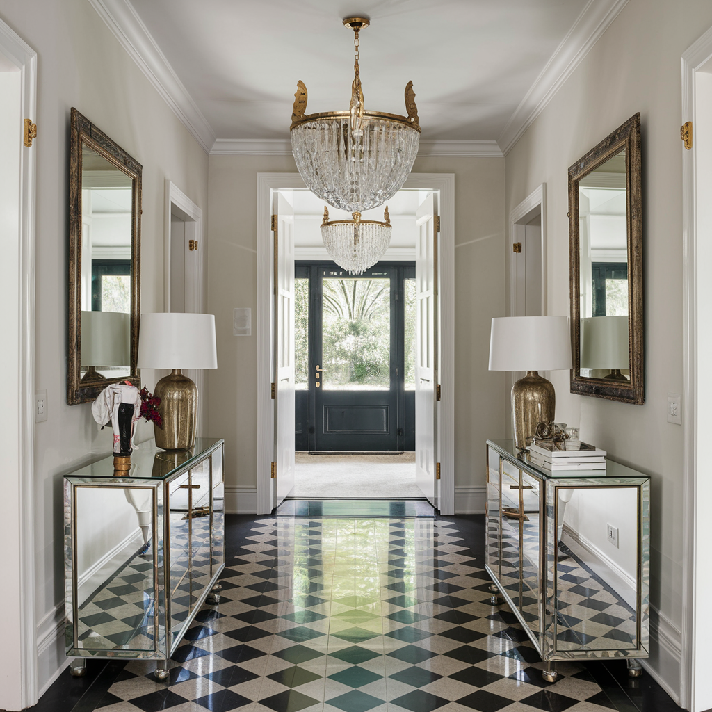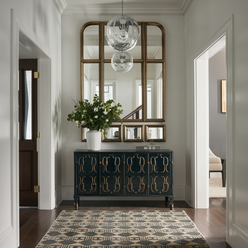 First of all, mirrors can not only make entrance halls look bigger but also more welcoming. Put a big mirror just above a console table and you can see it reflect light and give a greater sense, of the room. Select a mirror that has a special frame to give a personal touch. Put large or small mirrors or even a mirrored wall for the most surprising and dramatic effect.