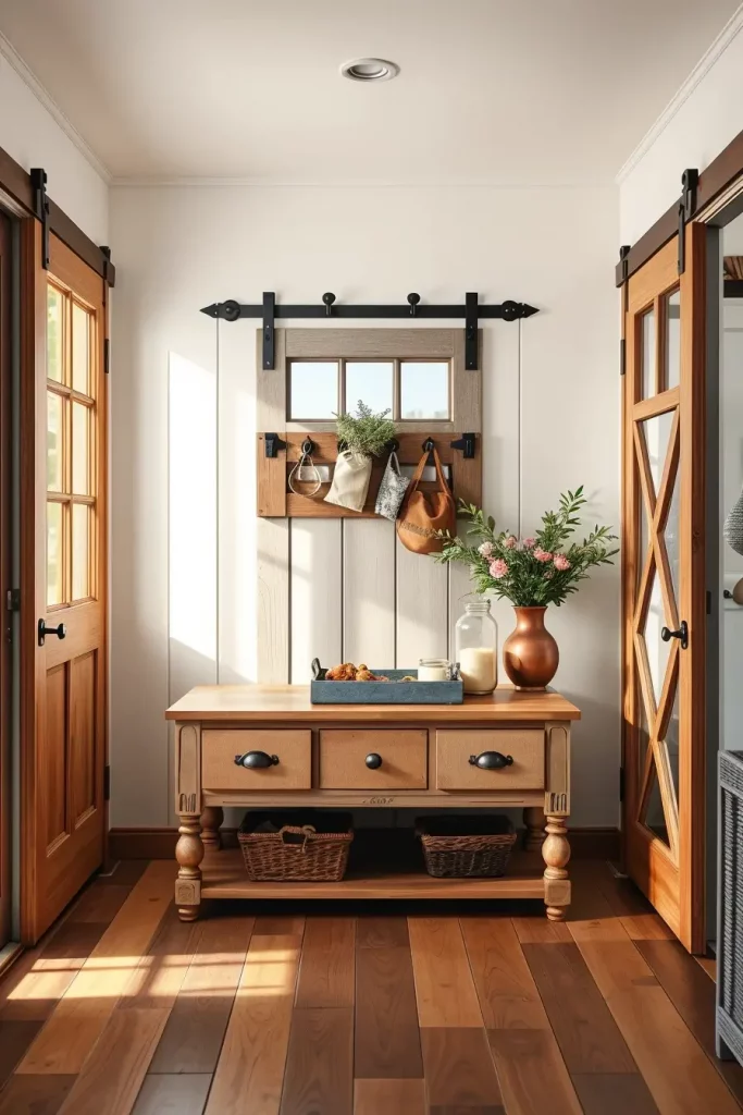 For my DIY project, I made a sliding barn door over the front to keep clutter out of sight while still giving a country feel. Custom entryways are claimed by The Spruce to offer extra useful features and design alternatives that are rare with off-the-shelf retail items.