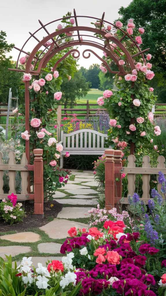 A garden fence serves both practical and decorative purposes, defining the space while adding charm. Options range from low wooden picket fences to decorative wrought iron enclosures. Climbing plants, such as roses or ivy, can soften the fence’s look, while integrating arbors, trellises, or built-in planters enhances the overall garden aesthetic. Choosing the right fence depends on whether the focus is on protection from animals, privacy, or sheer beauty.