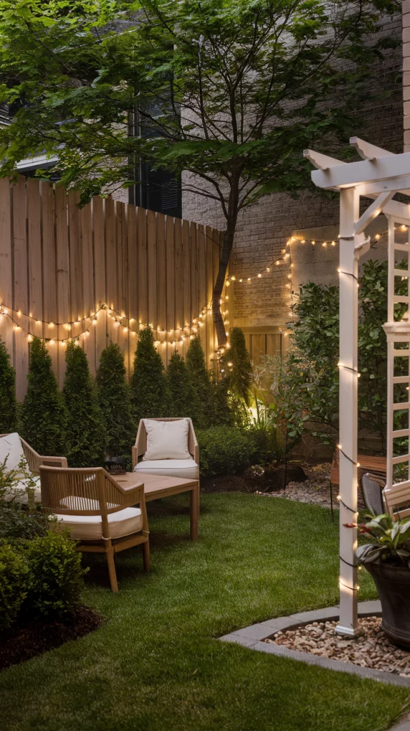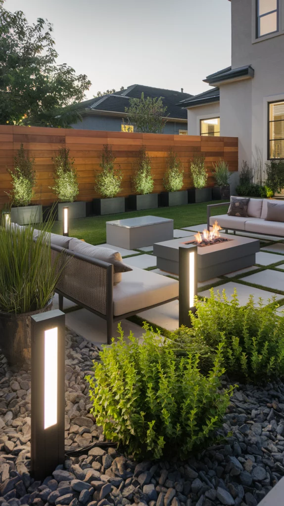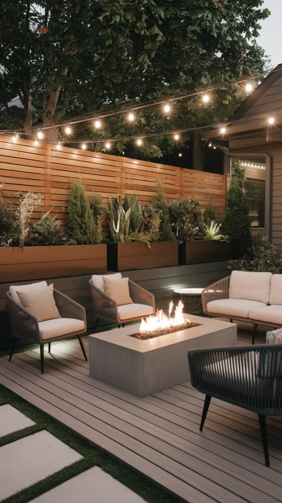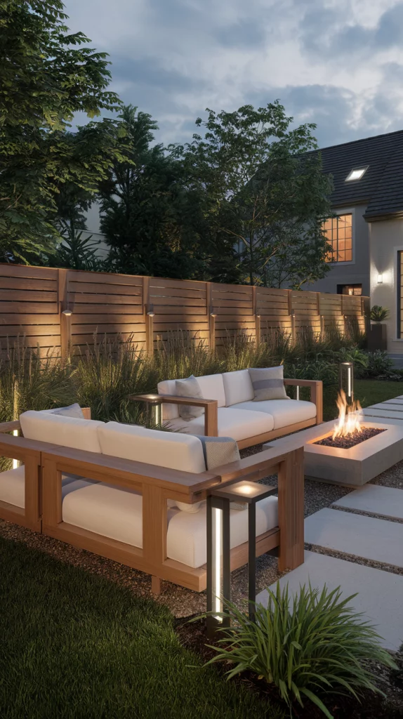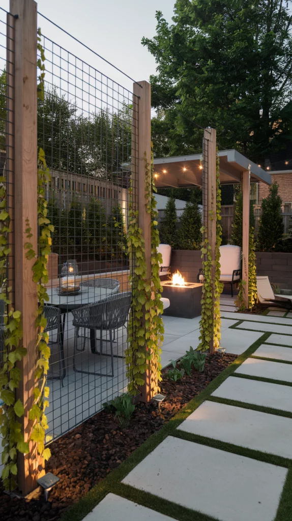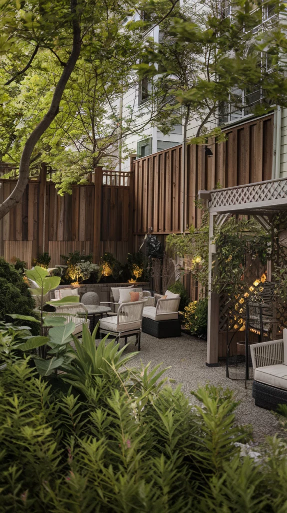 A slatted privacy screen fence offers both privacy and airflow, making it a stylish choice for urban and contemporary homes. These fences use wood or metal slats spaced strategically to create a semi-private enclosure that doesn’t feel completely closed off. Often paired with planters, outdoor lighting, or climbing greenery, slatted fences help define spaces like patios, decks, or backyards without feeling too confined.