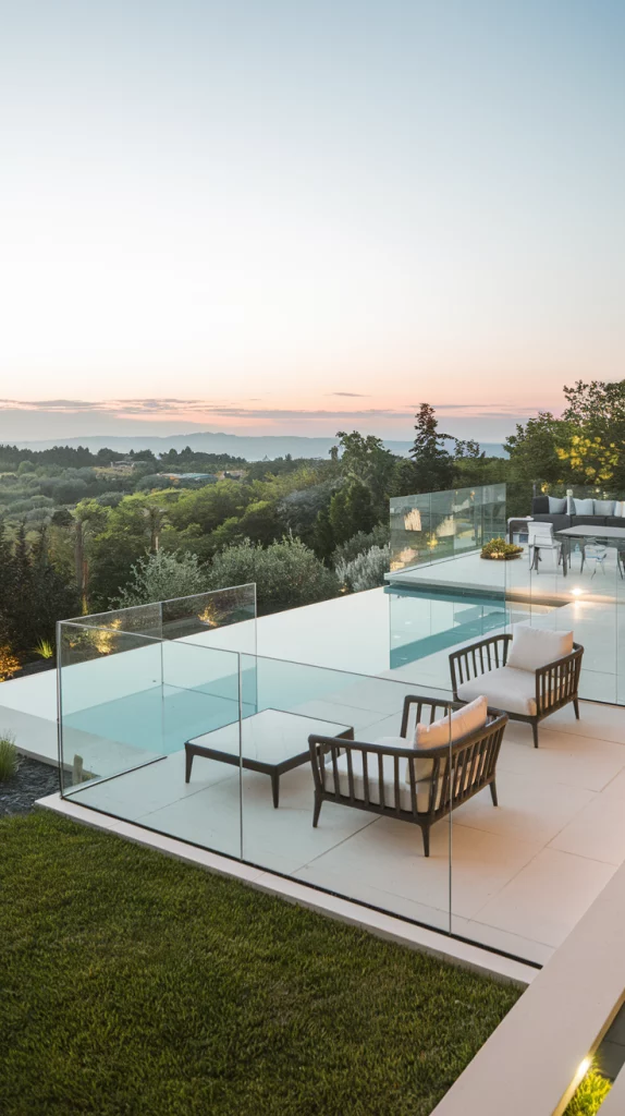 For a modern, unobtrusive look, glass panel fences provide a sleek alternative. These fences, commonly used for pools, patios, and balconies, create a seamless view while maintaining a sense of boundary. Adding frosted glass panels or steel framing can enhance the contemporary aesthetic.