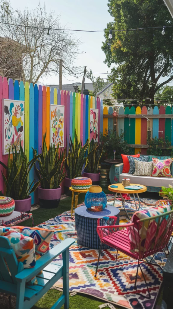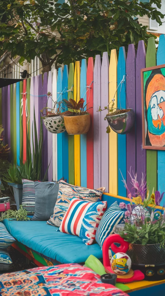 For a fence that stands out, bold and colorful designs make a statement. Painted wood, metal, or composite fences in shades of bright blue, deep red, or even artistic murals can add personality to any outdoor space. Whether used in bohemian gardens, children’s play areas, or artistic urban settings, a vibrant fence transforms the landscape. Adding decorative elements such as floral patterns, geometric designs, or custom artwork makes the fence a true focal point.