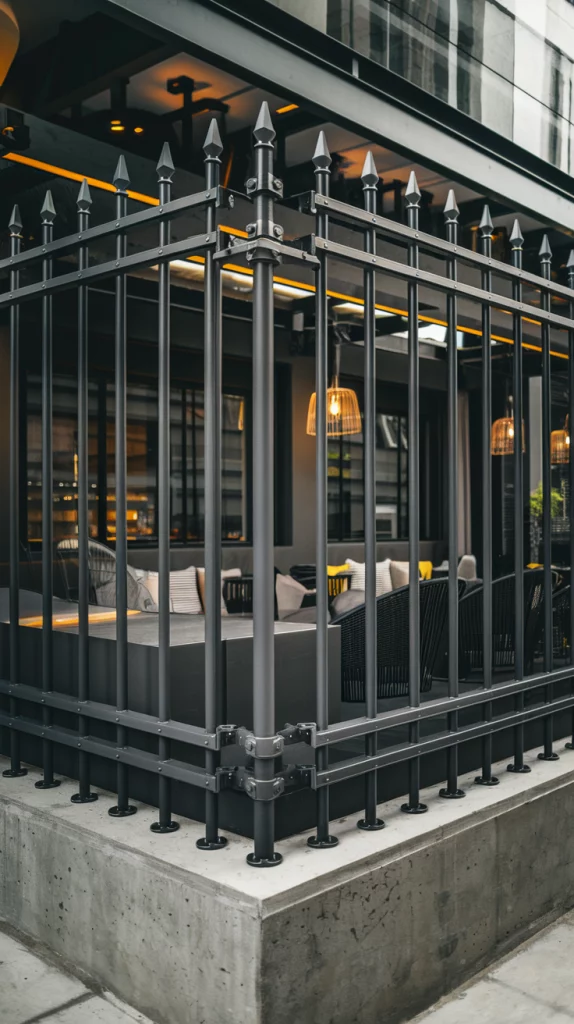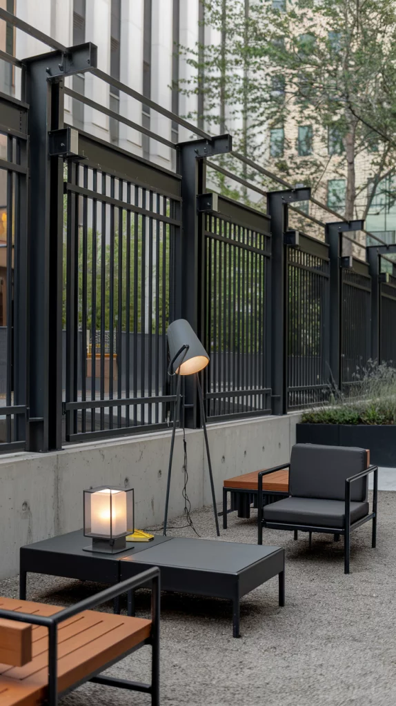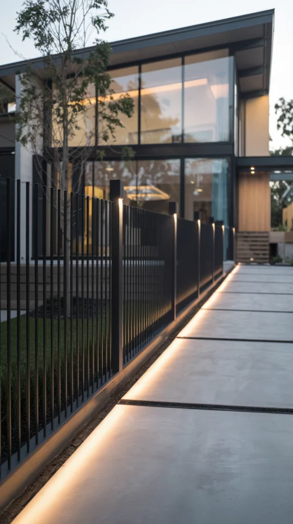 An industrial steel fence is a bold choice, offering unmatched durability and modern aesthetics. Often found in urban or industrial-style homes, these fences feature raw metal finishes, clean lines, and heavy-duty construction. Pairing steel with concrete bases, rust-resistant coatings, or wire mesh inserts enhances both function and design. The matte black or gunmetal finishes complement contemporary architecture while maintaining a strong, protective barrier.