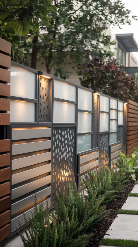 A perforated metal fence is a sleek, contemporary option that offers a balance between privacy, airflow, and aesthetics. These fences feature laser-cut patterns, geometric designs, or abstract cut-outs, adding a unique visual element while maintaining security. They work well in modern urban homes, commercial properties, or artistic landscapes. Pairing metal panels with LED backlighting creates an eye-catching nighttime display.