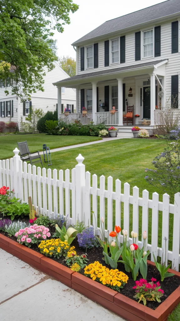 A white picket fence is a timeless symbol of charm and tradition, making it an excellent choice for suburban homes or cottage-style gardens. Made of wood or vinyl, these fences provide an elegant boundary while keeping the yard open and inviting. For a fresh twist, consider painting the pickets in soft pastel shades or adding decorative caps for a custom look.