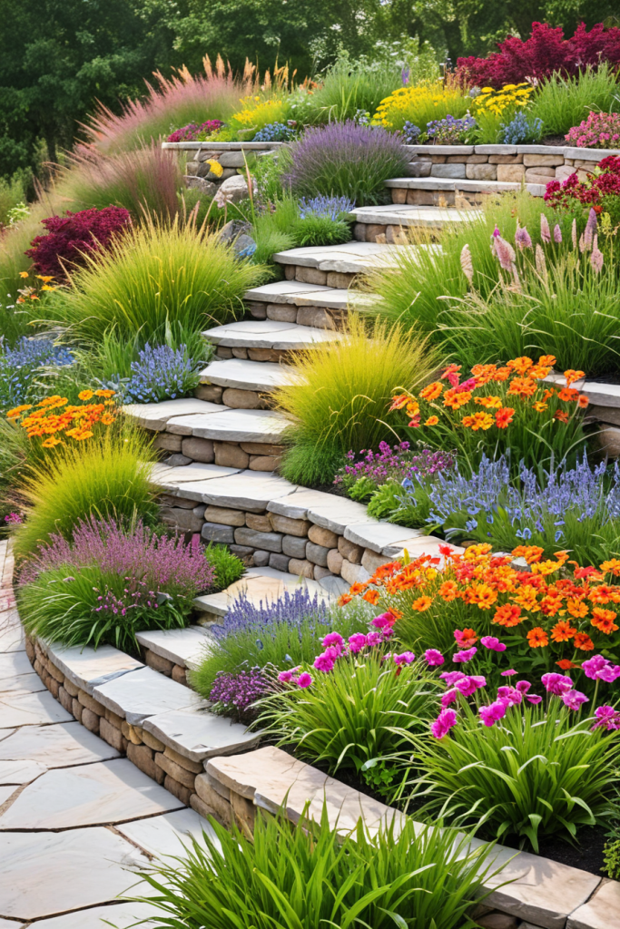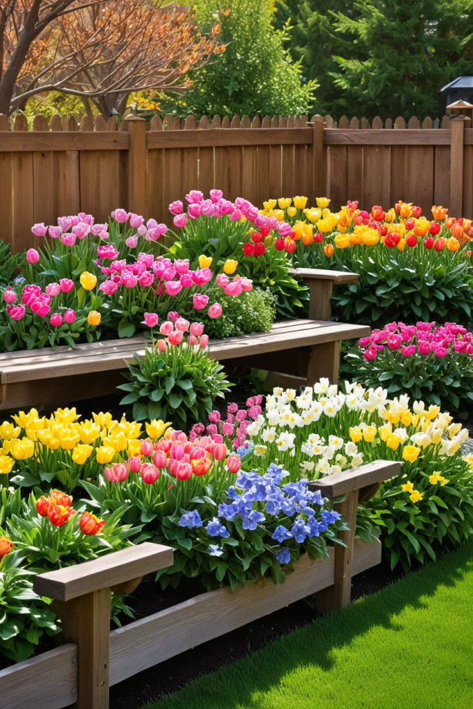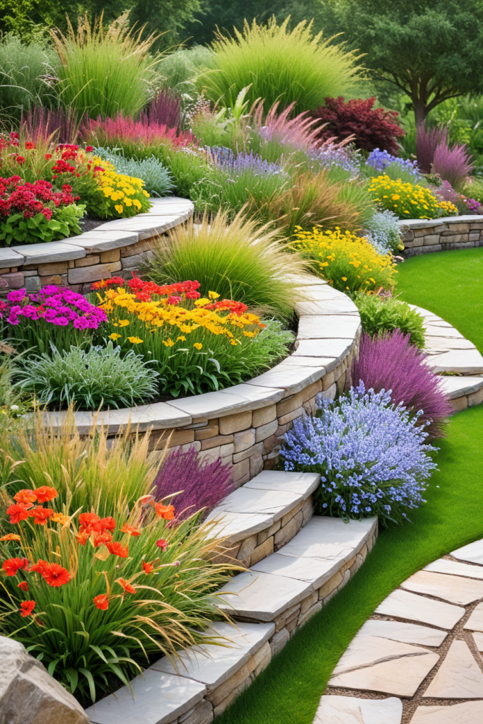 Raised flower beds provide better soil drainage, easier maintenance, and improved plant growth. Using wood, stone, or metal containers, these gardens offer a structured and organized appeal, ideal for both small and large spaces. Fill the beds with a mix of perennials, ornamental grasses, and vibrant seasonal flowers for a lush effect. A tiered raised bed design adds dimension, while built-in irrigation systems make watering effortless.