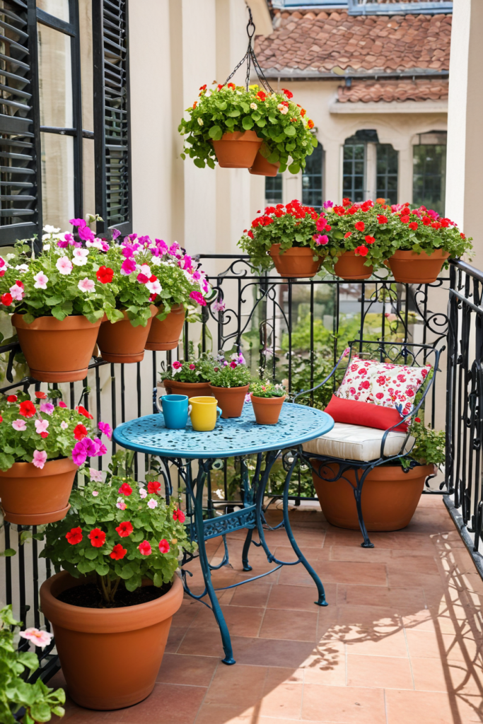 For small spaces like patios and balconies, container gardening is a versatile solution. Use terracotta pots, hanging baskets, or vertical planters to grow roses, petunias, geraniums, and ferns. Arranging different pot sizes and heights creates depth, while decorative ceramic or metal containers add style. Hanging vines like trailing lobelia or ivy can provide a cascading floral effect, bringing a lush garden feel to compact areas.
