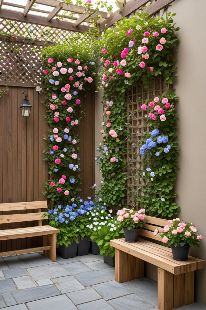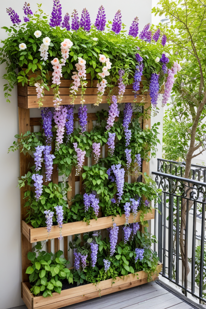 For urban dwellers or those with limited space, vertical gardens offer an innovative way to enjoy lush greenery. Wall-mounted planters, trellises with climbing roses, and hanging floral baskets maximize vertical space. A green wall of cascading flowers, such as clematis, morning glories, or wisteria, creates a breathtaking living tapestry. Adding small shelves or tiered plant stands allows for an organized and stylish floral display.