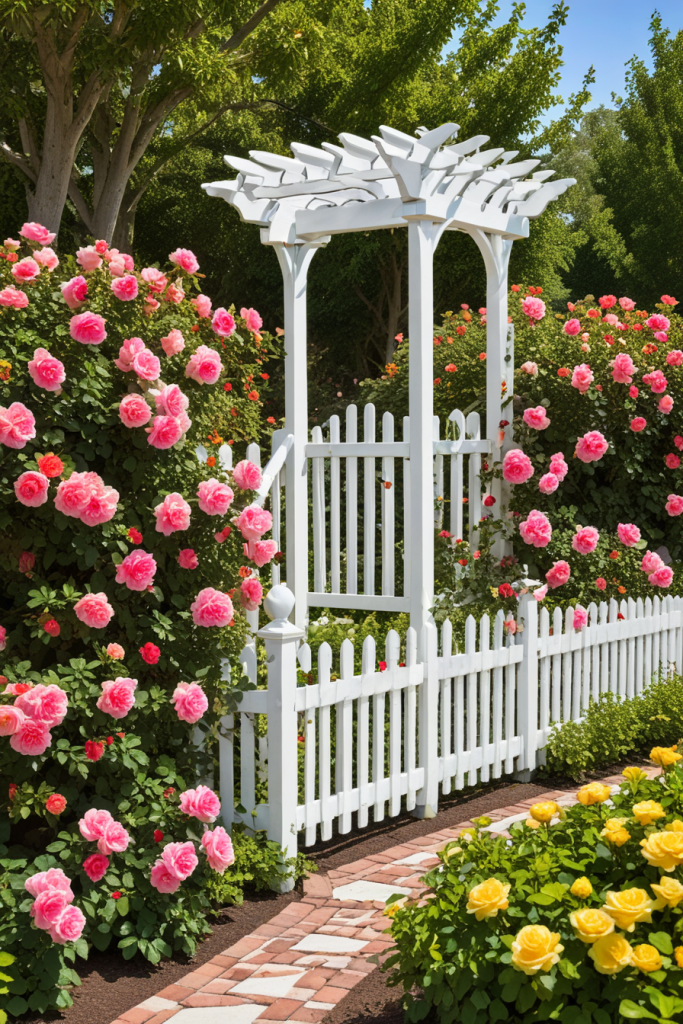 Fencing and trellises not only add structure to a flower garden but also serve as decorative elements. A classic white picket fence offers a charming, traditional look, while wrought-iron fences enhance elegance. For a more organic touch, consider bamboo or wooden trellises supporting climbing roses or ivy. Integrating decorative arches or lattice panels adds depth and enhances the overall garden design.