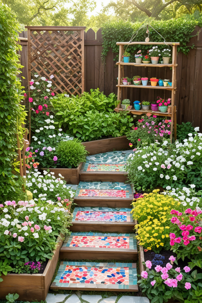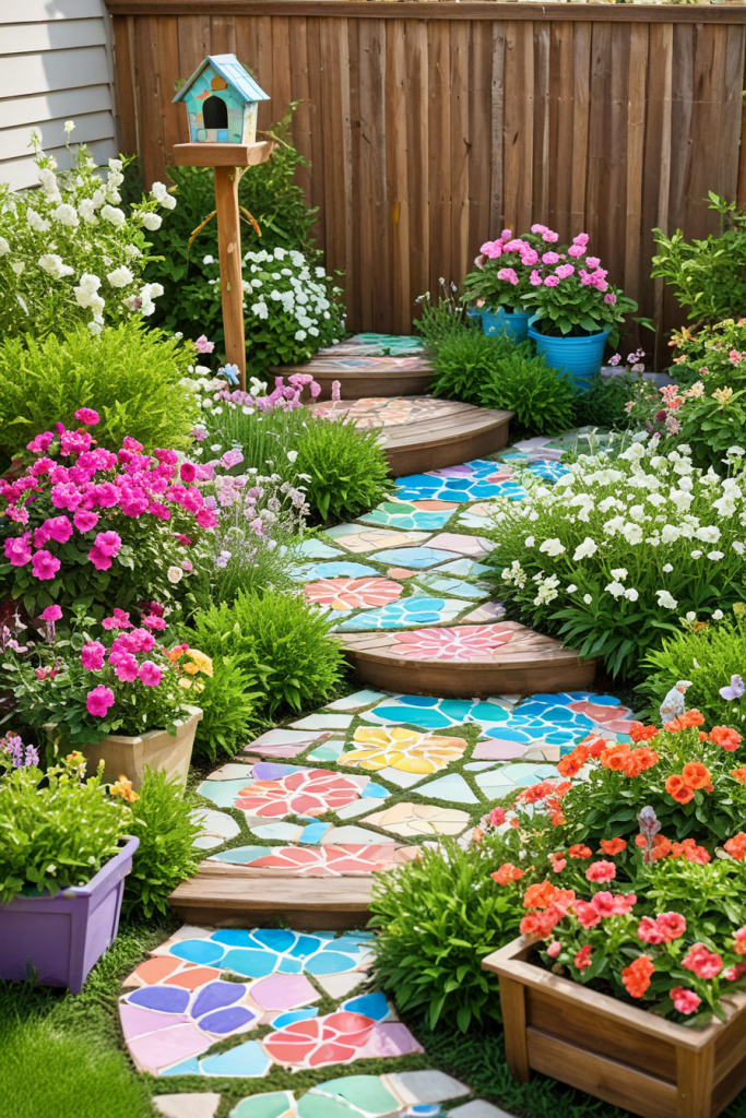 Adding DIY elements to a flower garden brings a personalized and creative touch. Consider repurposing old wooden crates into flower beds, creating a mosaic stepping-stone path, or designing handmade birdhouses to attract wildlife. DIY trellises from reclaimed wood, colorful painted planters, and homemade garden signs add uniqueness while blending seamlessly into the landscape.