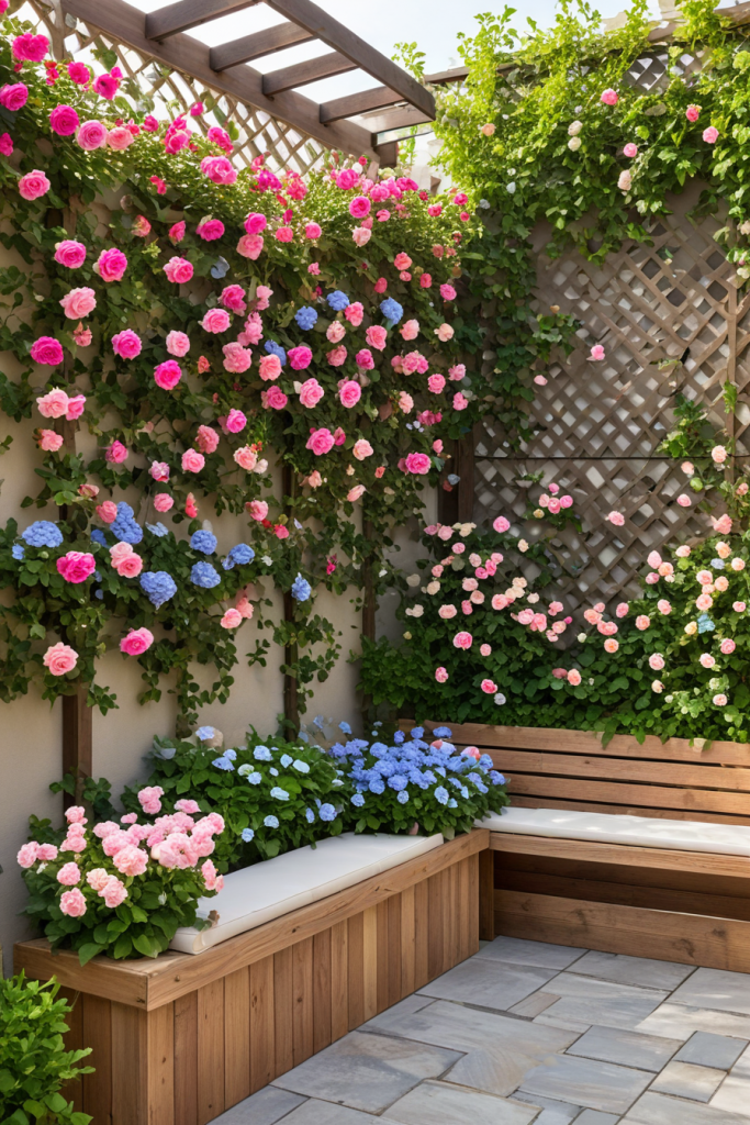 Even in small spaces, a flower garden can thrive with vertical planting, container gardens, and space-efficient layouts. Opt for tiered planters, wall-mounted flower boxes, and compact perennials like hydrangeas, dwarf roses, and violets. A small trellis with climbing vines or a miniature Zen-inspired rock garden can maximize beauty without overwhelming limited space.