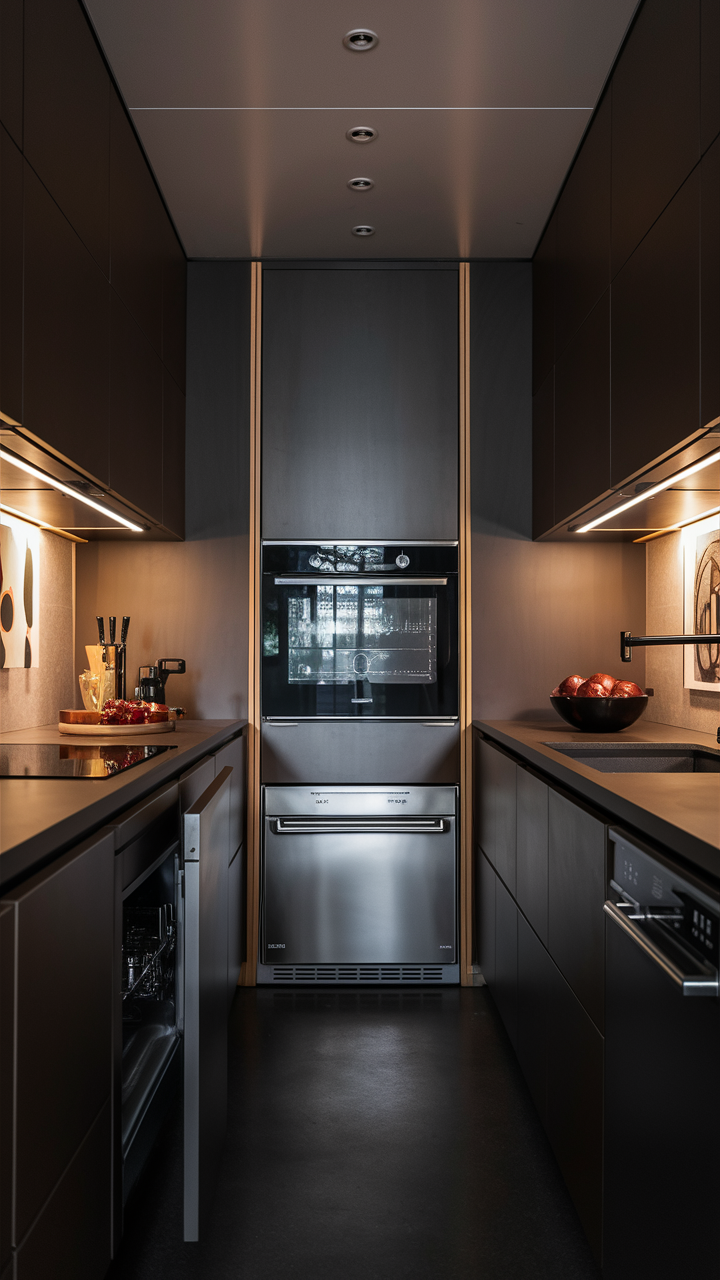 The use of the latest appliances in a galley kitchen can lead to the enhanced function and productivity of the space. Select slim, energy-efficient devices that fit naturally into the layout. Built-in ovens, under-counter refrigerators, and integrated dishwashers are the best kind of machines which require only a limited room and a streamlined and modern appearance can still be maintained.