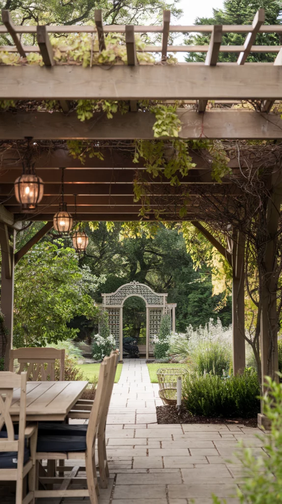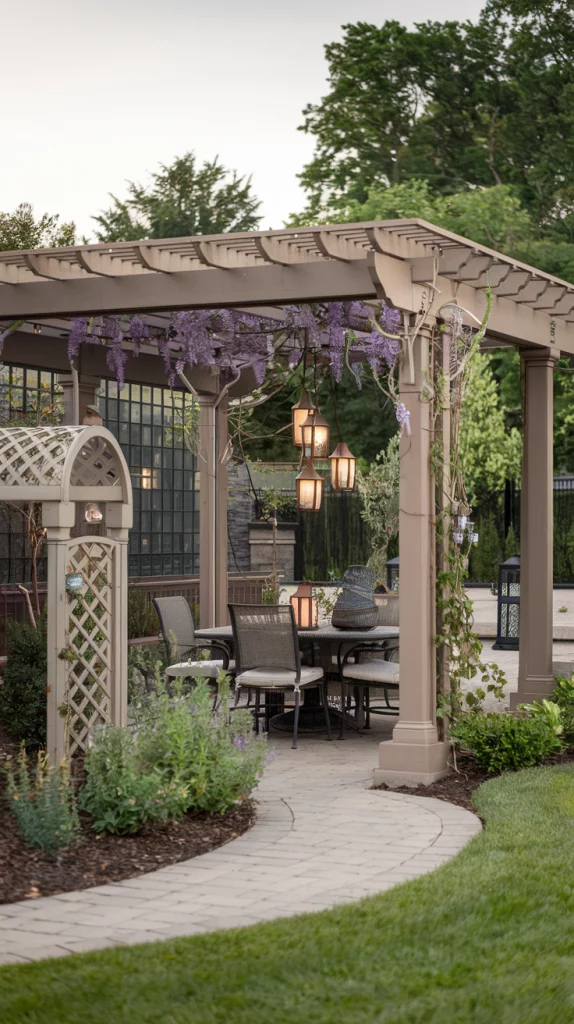 Pergolas and arbors add vertical interest and structure to your backyard. Use a pergola to define a seating or dining area, and adorn it with climbing plants like wisteria, jasmine, or roses. Arbors can serve as entrances to garden pathways or focal points in flower beds. Pair these features with lanterns, hanging planters, or fairy lights for an elegant finish. These additions create shade and add architectural charm.