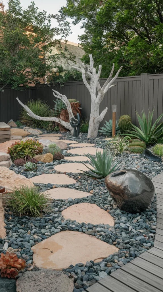 Rock gardens add texture and a rugged charm to your backyard. Use a mix of stones, boulders, and gravel to create a natural, layered look. Plant drought-resistant succulents, cacti, or alpine plants to complement the stones. Include accents like driftwood or decorative sculptures for added interest. This low-maintenance design is ideal for those seeking a unique, modern outdoor aesthetic.