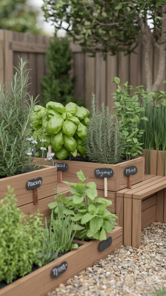 A backyard herb garden is perfect for beginners and provides a fresh supply of ingredients right at your fingertips. Choose a sunny spot and use wooden or metal planters to grow popular herbs like basil, thyme, rosemary, and mint. Opt for raised beds or a tiered planter for an organized and accessible layout. Incorporate small signs or markers for each herb and add a compact bench nearby for convenience. This functional design ensures both aesthetic appeal and practicality.