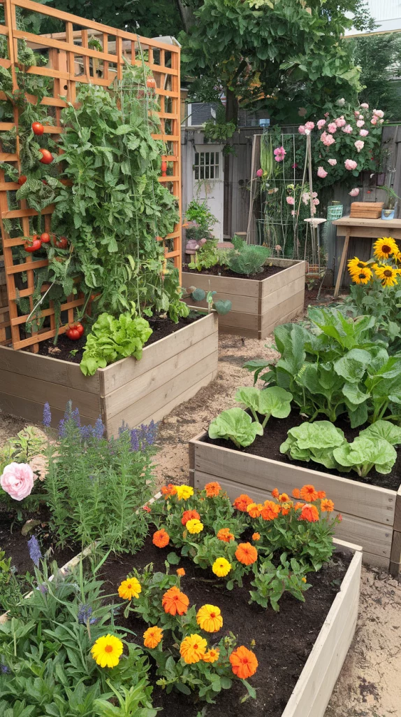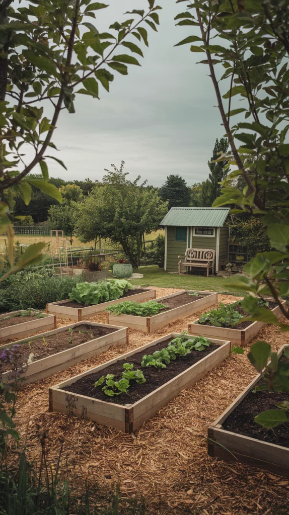 Blend functionality and beauty with a vegetable garden in your backyard. Use raised beds or wooden planter boxes arranged in neat rows or grids for an organized appearance. Practice companion planting to promote healthy growth. Add a small garden shed or tool storage for convenience. A rustic wooden bench provides a spot to relax while you tend your garden.