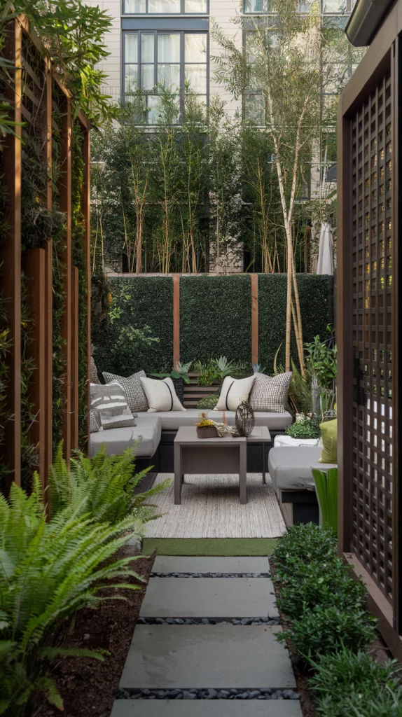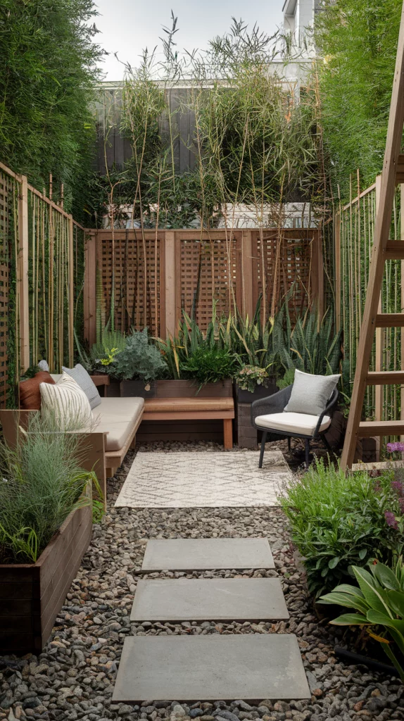 Turn your backyard into a private oasis with thoughtful design elements. Plant tall hedges, bamboo, or fast-growing trees like arborvitae to create natural privacy walls. Use lattice panels or decorative screens for added seclusion while allowing air and light to filter through. Add cozy seating, soft outdoor rugs, and planters with lush greenery to enhance the secluded vibe. This setup ensures a peaceful escape from the outside world.