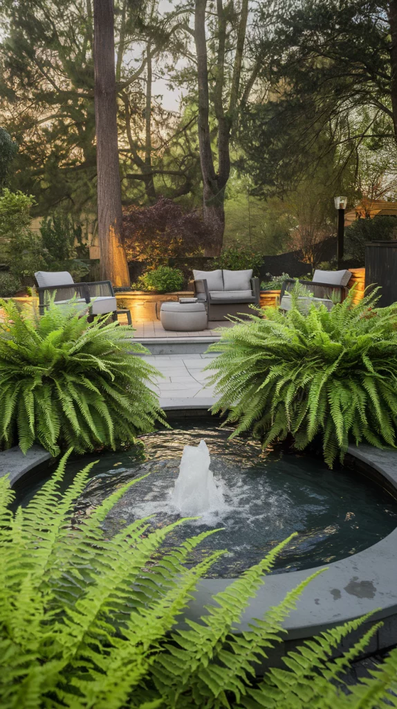 Adding water features creates a serene and sophisticated ambiance in your backyard. Consider a small pond, bubbling fountain, or cascading waterfall as the focal point. Surround the feature with lush greenery, such as ferns and hostas, for a natural touch. A seating area nearby with weather-resistant chairs offers a relaxing spot to enjoy the water sounds. Subtle lighting enhances the atmosphere in the evening.