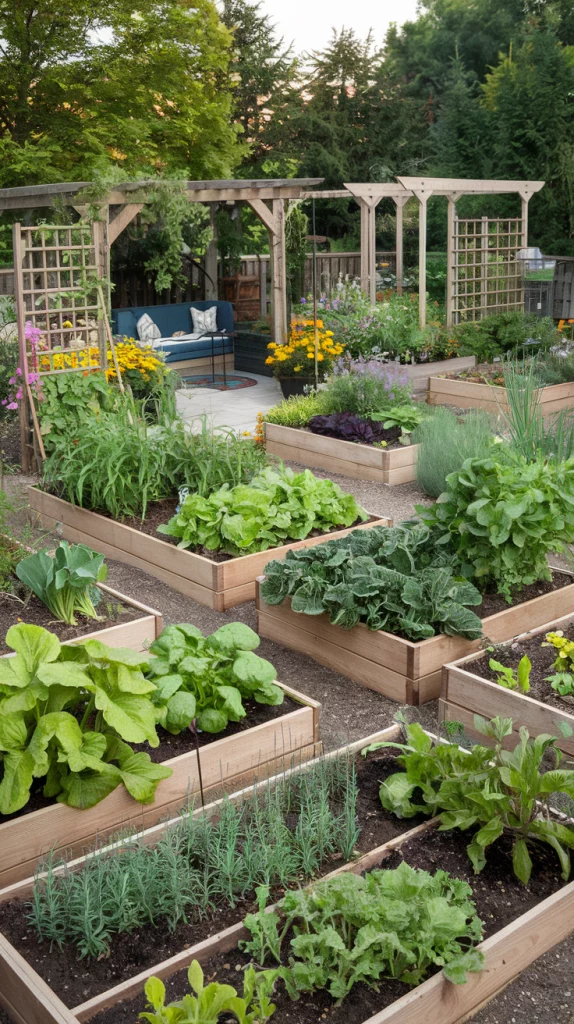 Raised garden beds add structure and versatility to your backyard. Use materials like wood, stone, or galvanized metal to create modern or rustic looks. Fill the beds with nutrient-rich soil and plant vegetables, herbs, or flowers. Decorate with painted rocks or miniature garden figurines for a personal touch. Pea gravel or mulch pathways around the beds add definition and ease of access.