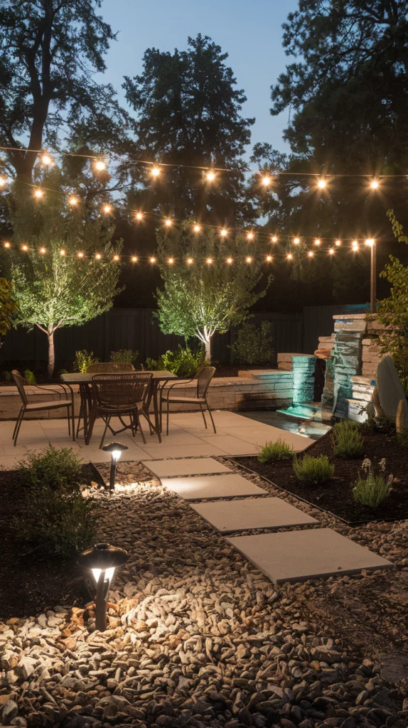 Lighting sets the mood in your backyard garden. Use string lights above seating areas for a warm, inviting glow. Solar-powered stake lights can line pathways or highlight flower beds. Add LED spotlights to illuminate trees, pergolas, or water features for a dramatic effect. For a touch of whimsy, hang lanterns or fairy lights from tree branches. Well-placed lighting ensures your garden remains enchanting, even after sunset.