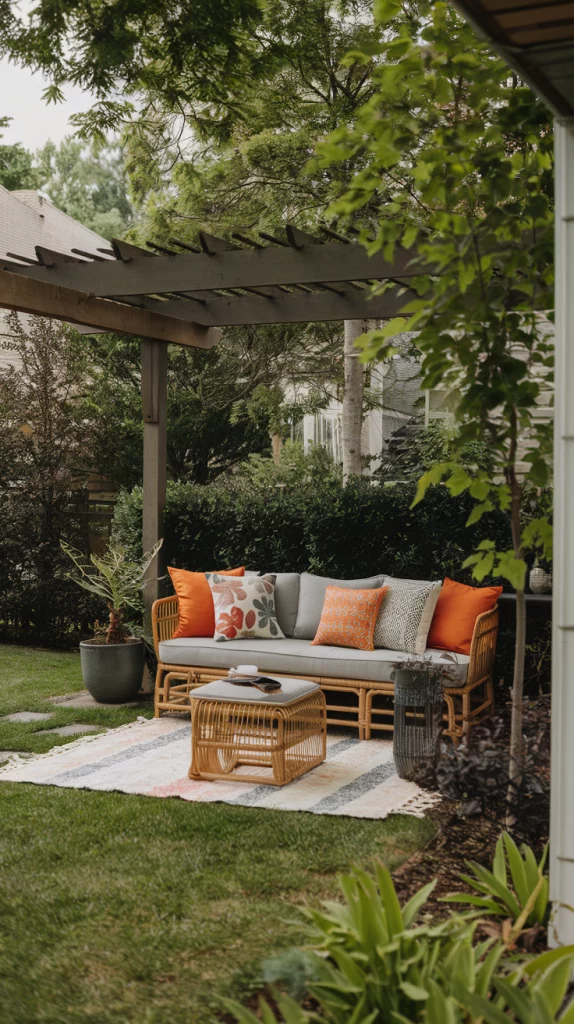 A dedicated seating area transforms your backyard into a social and relaxing space. Use weather-resistant furniture like teak chairs, rattan sofas, or cushioned benches to create comfort and style. Consider positioning the seating under a pergola or next to a water feature for shade and ambiance. Add throw pillows, a side table, and a small outdoor rug for a cozy, inviting atmosphere.