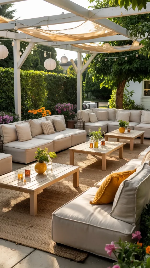 When I design garden party setup ideas 2026, I always prioritize creating cozy lounge zones where guests can unwind. In 2026, the trend leans toward low-profile seating arrangements that feel intimate and inviting. I like to arrange sofas, poufs, and floor cushions in conversational clusters, surrounded by greenery to enhance the sense of privacy. This approach not only maximizes comfort but also encourages natural interaction among guests.