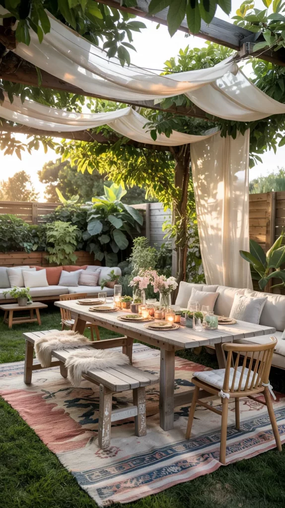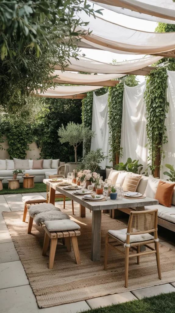 From my experience, furniture selection plays a key role in achieving comfort and style. I prefer modular outdoor sofas, lightweight chairs, and extendable tables that can adapt to different guest counts. Adding umbrellas or pergolas provides shade while contributing to the overall aesthetic. I also recommend using layered lighting such as string lights, lanterns, and solar-powered fixtures to create a warm ambiance as the evening sets in.