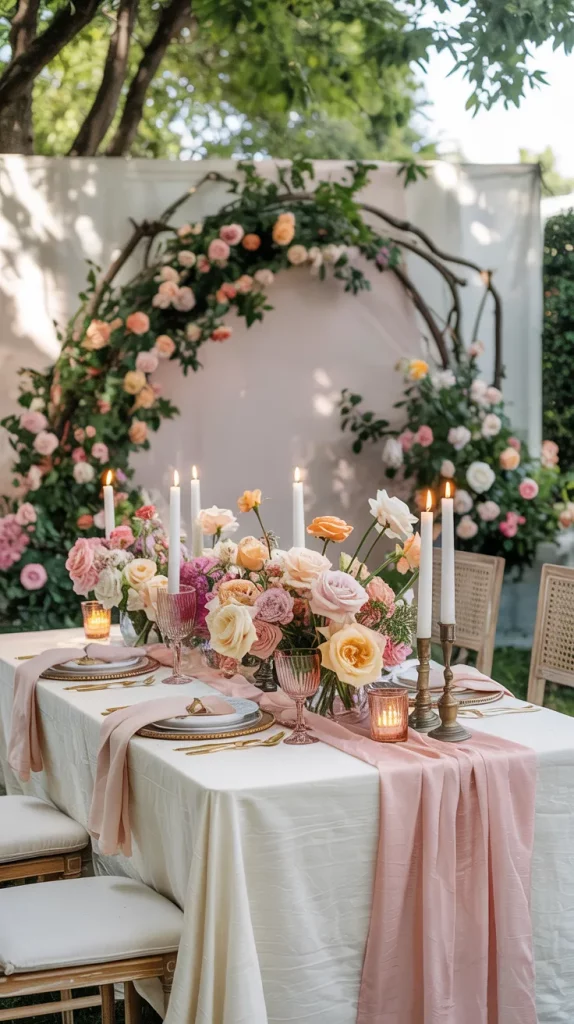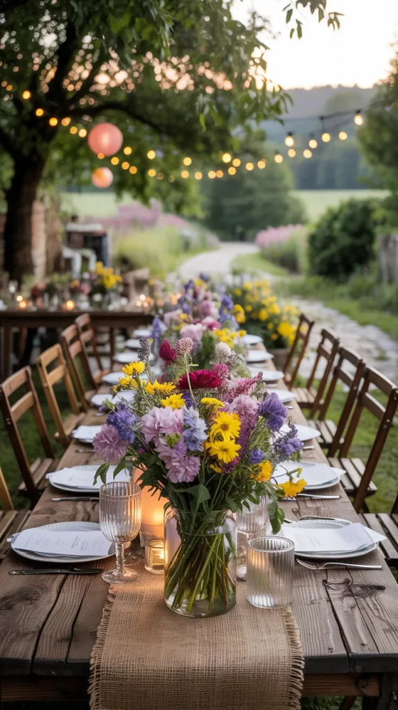 Floral styling is one of the most impactful elements in outdoor party decor inspiration, and I always treat it as a central design feature. In 2026, I lean towards organic, slightly asymmetrical arrangements that feel natural rather than overly structured. I like to integrate flowers directly into the environment, using arches, hanging installations, and table runners made from greenery and blooms.