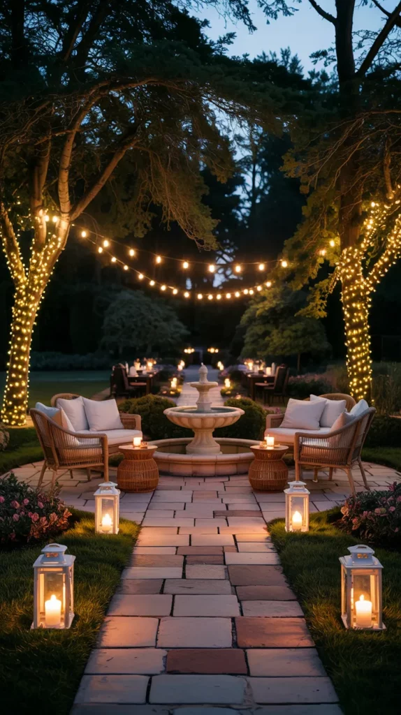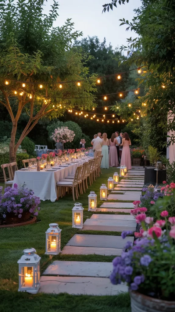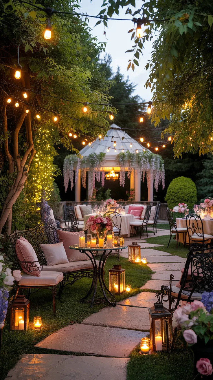 Evening garden parties offer a completely different atmosphere, and lighting becomes the central design element. I focus on layering different light sources to create depth, warmth, and a magical ambiance. In 2026, lighting is not just functional but a key part of outdoor party setup ideas.