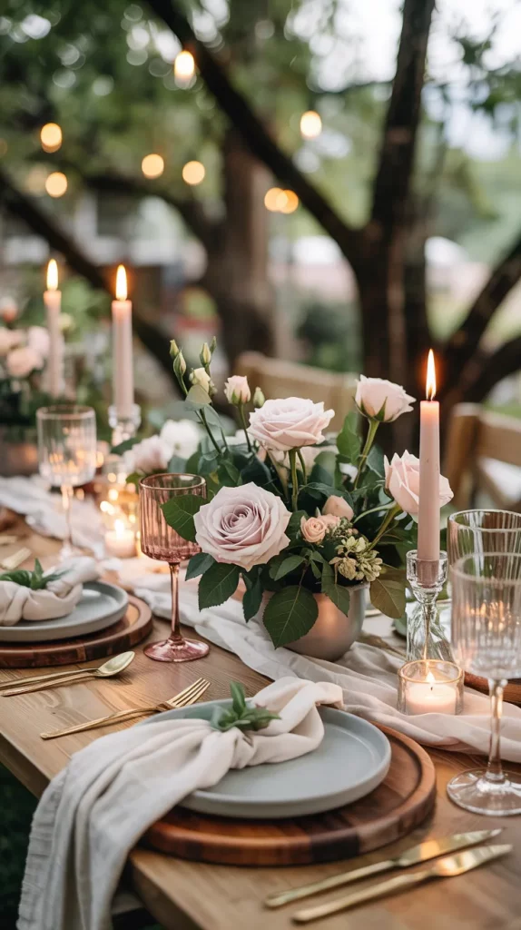 Table decor is where I bring personality into the garden party setup. I focus on creating a layered look that feels curated but not overly styled. In 2026, I lean toward natural materials and minimalistic arrangements that highlight craftsmanship and texture.