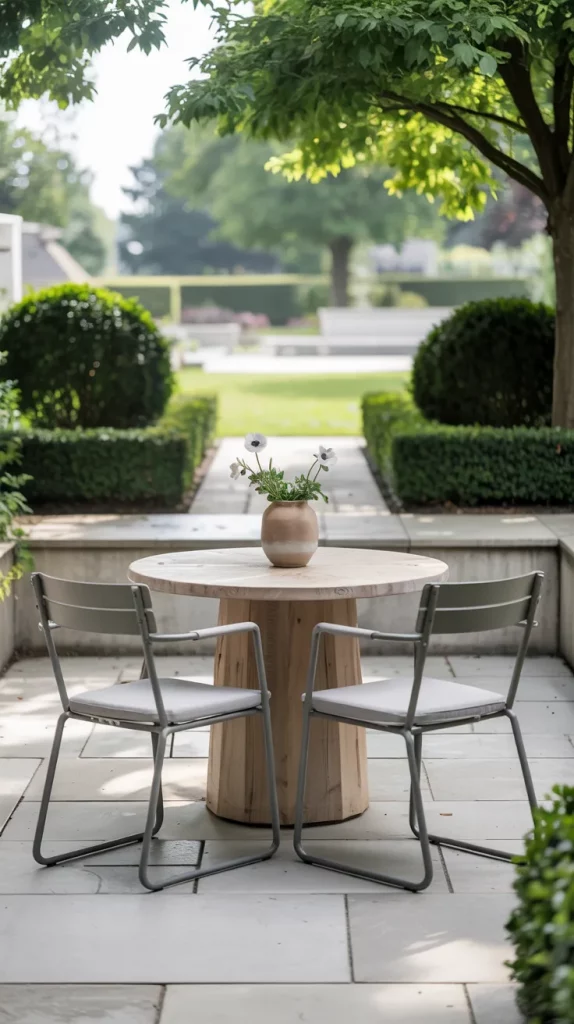 I approach elegant outdoor dining by first focusing on spatial flow and comfort. In 2026, I see a strong emphasis on blending indoor sophistication with outdoor openness, using large wooden or stone dining tables positioned centrally in the garden. I ensure there is enough circulation space around the table, while integrating natural elements like greenery and soft landscaping to maintain a relaxed yet refined feel.