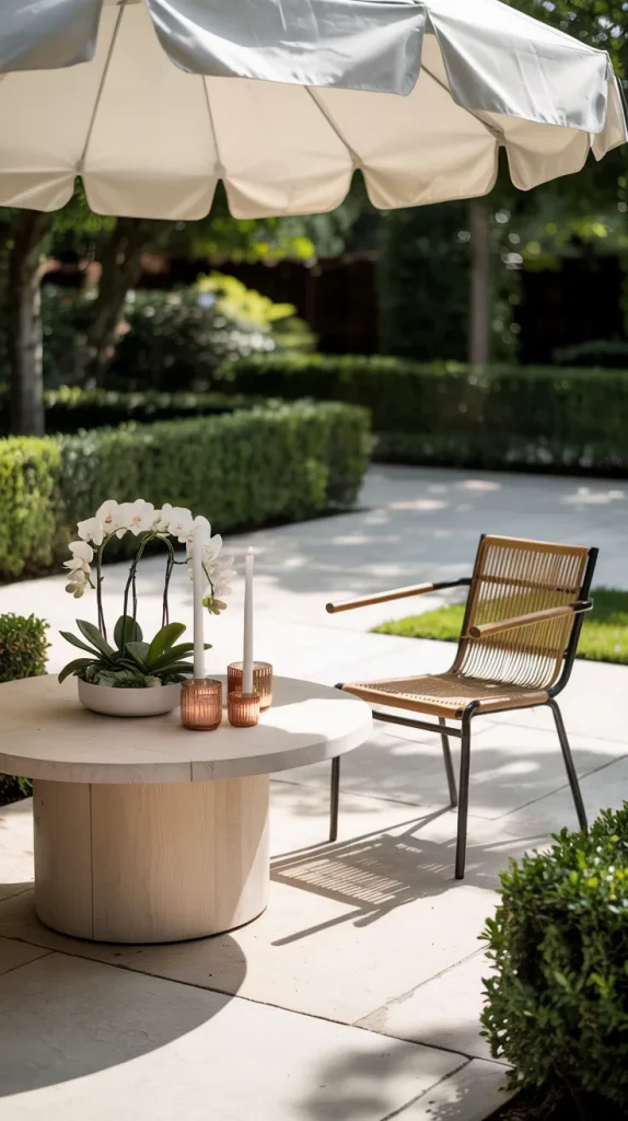 When selecting furniture, I prefer solid wood or powder-coated metal tables paired with upholstered outdoor chairs for comfort. Linen tablecloths, ceramic dishware, and glassware elevate the setting, while subtle centerpieces like fresh flowers or herbs keep the design grounded. I always include shade elements such as pergolas or large umbrellas, which are essential for both comfort and visual structure.