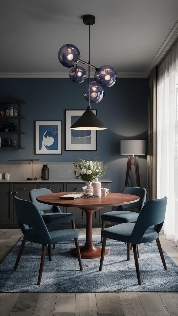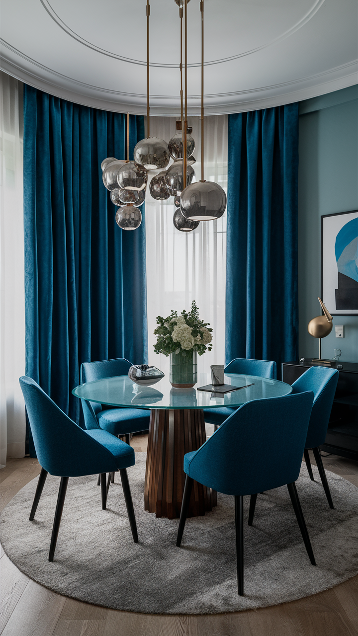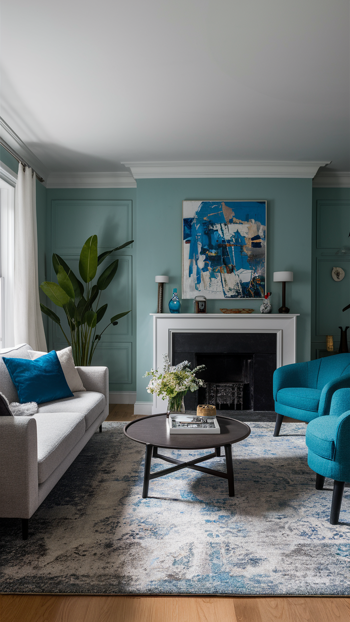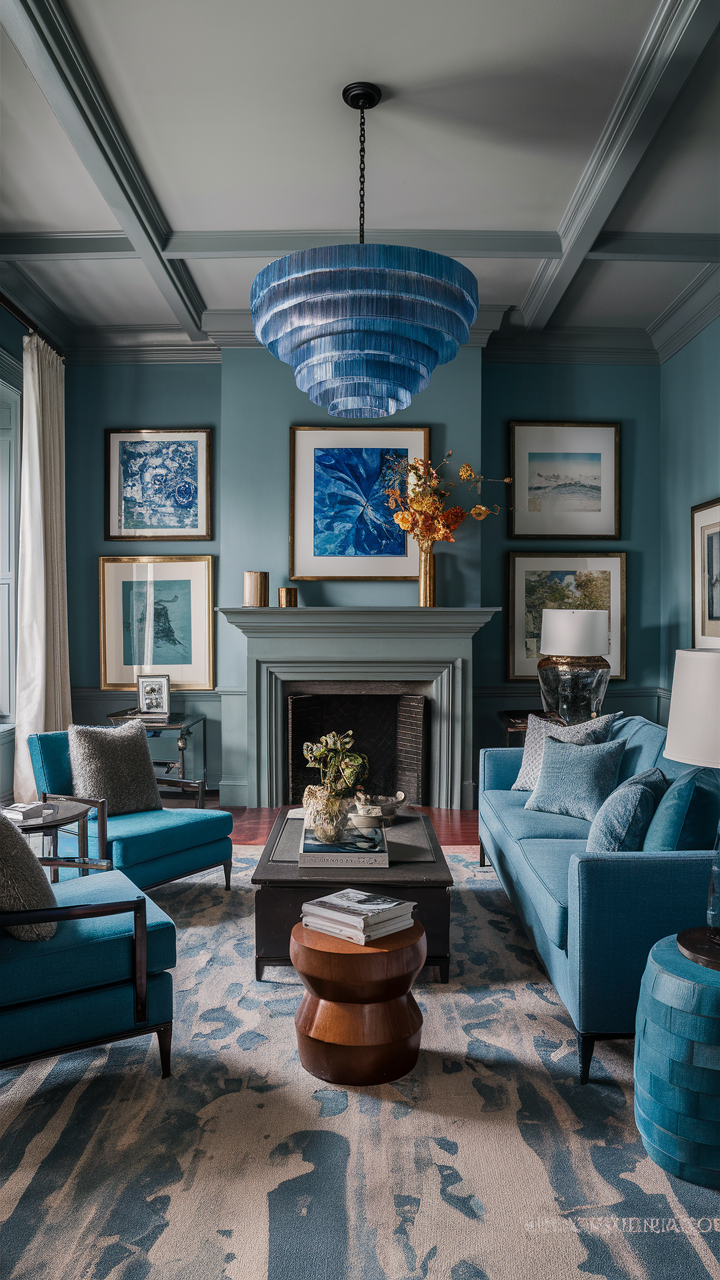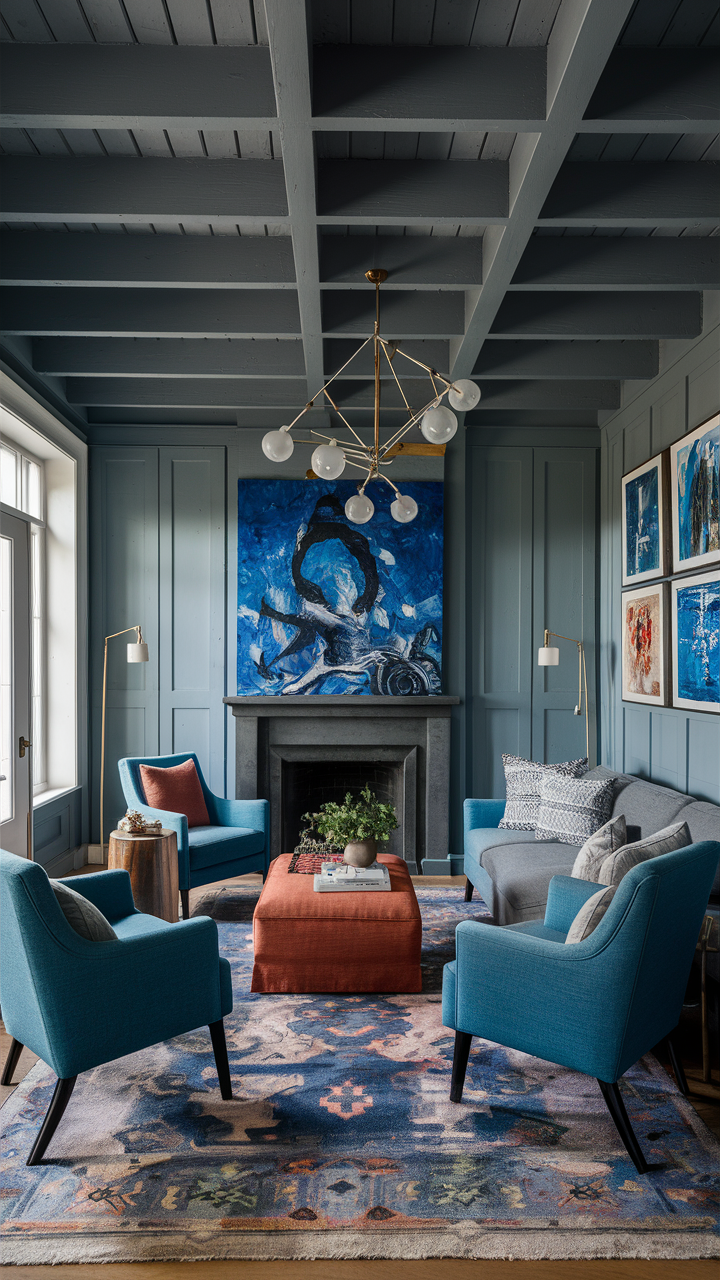 A lot of charming blue armchairs in a well-designed gray and blue living room can help you get a refined and high-class look. Blue armchairs can be a better choice since they offer both comfort and style, and their positions provide a private conversation area.