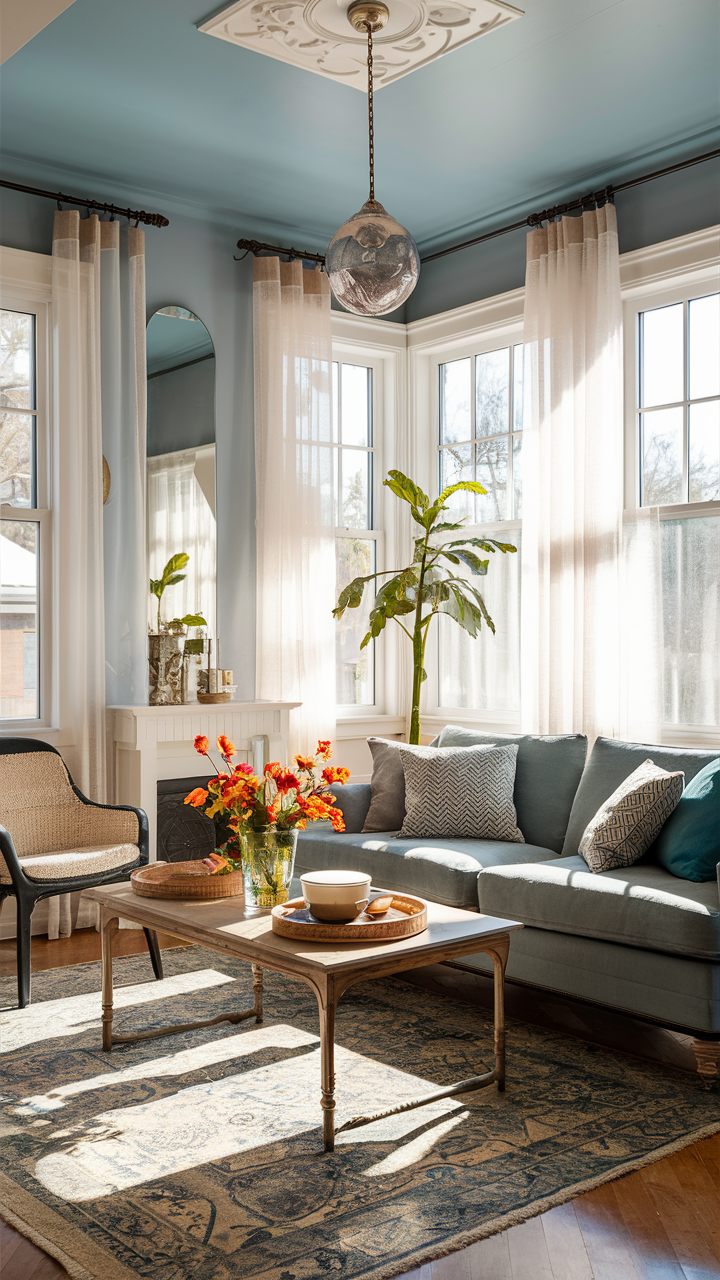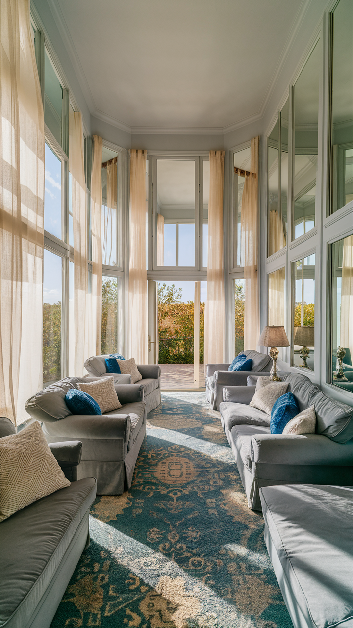 An arrangement that maximizes natural light can make your gray and blue living room look brighter and more open. Use sheer curtains or blinds that can be manipulated easily to enable daylight to penetrate your home. Place mirrors judiciously so that they can help brighten the room and make space look bigger.